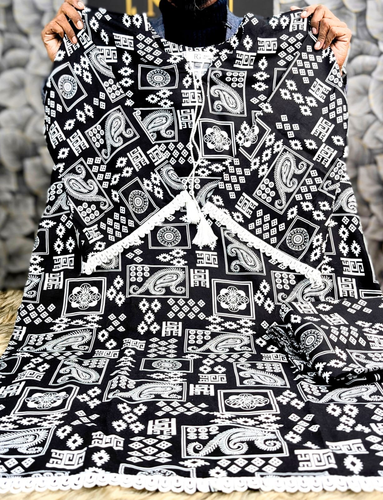 গলার অংশে দেওয়া আছে চায়না প্রিমিয়াম টারসেল, আর হাতা ও জামার নিচের অংশে রয়েছে অরিজিনাল চায়না লেইস ওয়ার্ক – যা দিচ্ছে এক্সক্লুসিভ পাকিস্তানি কামিজ লুক।
